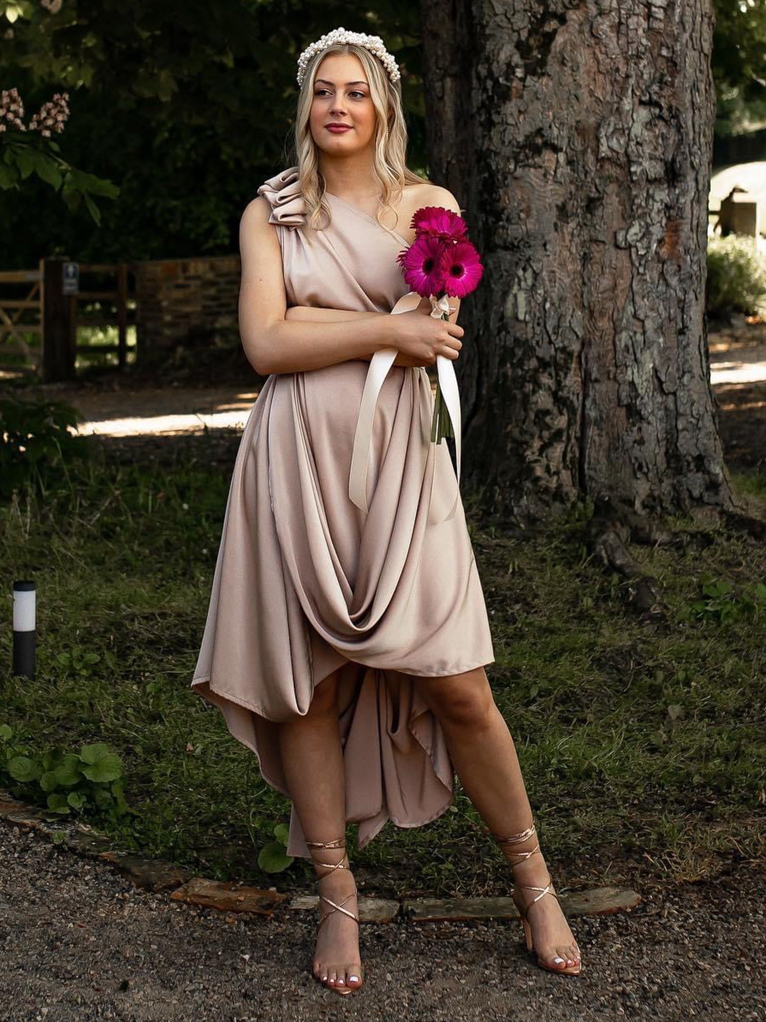 The Jessie Dress has a chic one-shoulder cut with an asymmetric neckline and draping detail giving it a romantic feel. Perfect for elegant bridesmaids, the races and charity events.